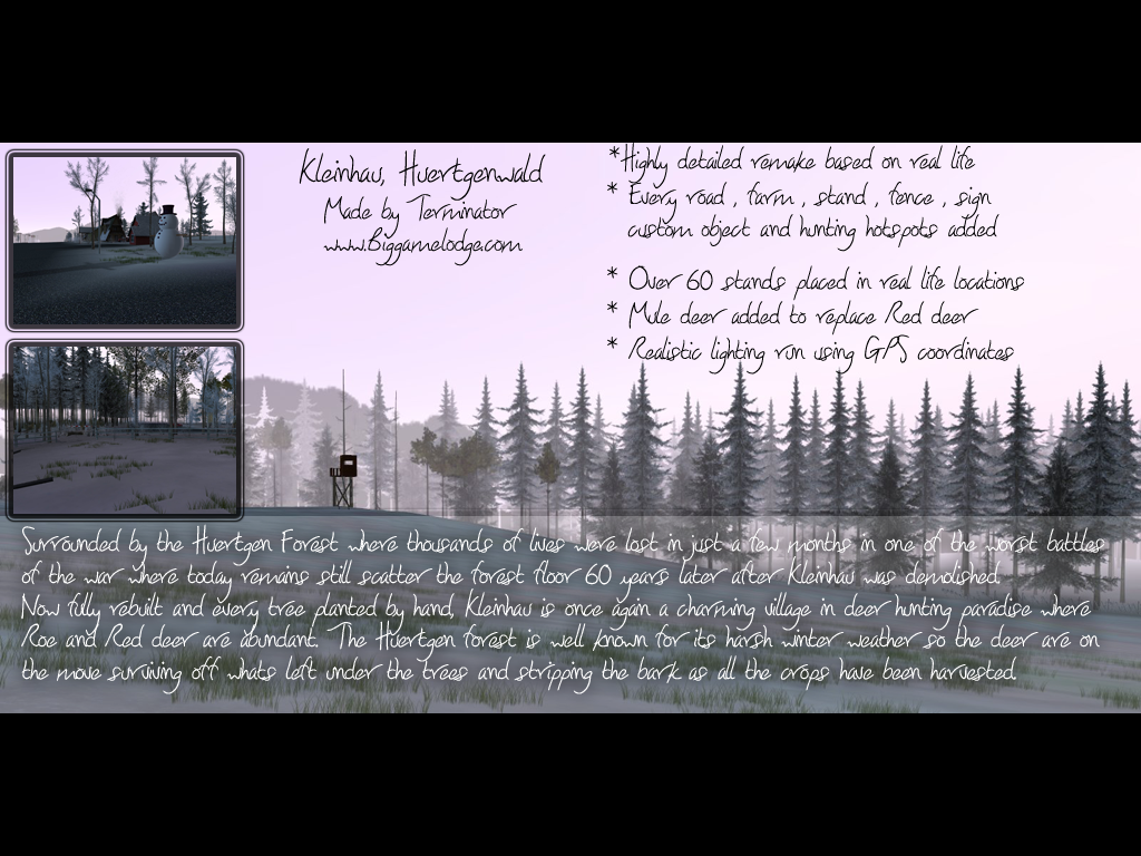 Since my previous map alot happened - most importantly the next installment of The Deerhunter Series, Deerhunter Tournament, failed.... miserably. The developer got swallowed up by UBI and that was that - the community started to decline with no new hunting sim.
